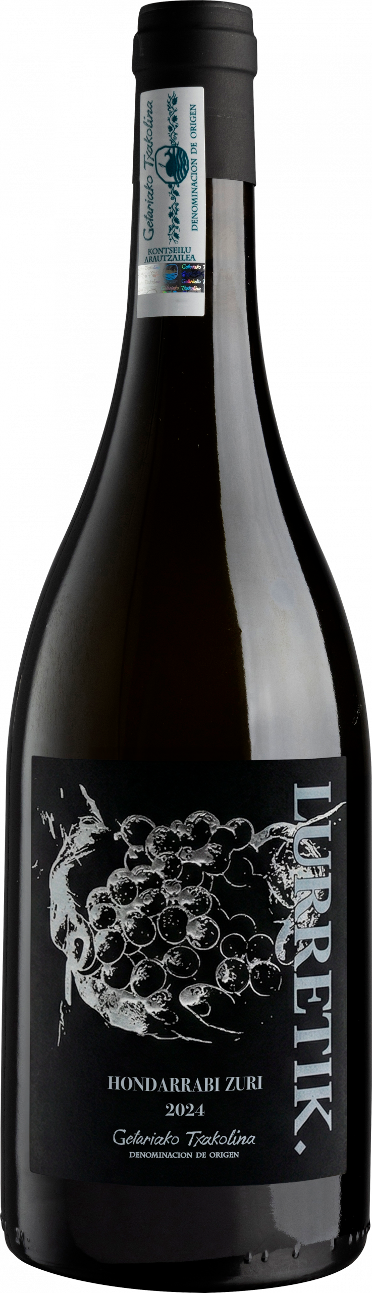 Denominación de Origen Getariako Txakolina, viñedos propios de entre 15 y 20 años, en espaldera de orientación sureste y norte, suelos de arcillas, margas y calizas, viticultura sostenible con el 80% de los trabajos manuales.
